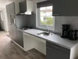 De woonkamer van deze voor mindervaliden aangepaste vrijstaande Villetta heeft een zithoek met tv, radio en een eethoek. De (aangepaste) open keuken is ingericht met een 4-pits gasstel, afzuigkap, koelkast, magnetron en een vaatwasser. Er zijn 2 slaapkamers met 2 éénpersoons bedden. De badkamer heeft een ligbad, douche met zitje, wastafel en een toilet met steunen. Deze stacaravan heeft een gelijkvloers terras met tuinmeubilair en is makkelijk toegankelijk via de openslaande tuindeuren.