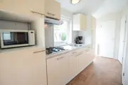 Chalet type E heeft een entree, gezellige woonkamer met zithoek, eethoek en smart-tv met apps als Netflix. De open keuken heeft een afwasmachine, magnetron, koffiezetapparaat en waterkoker. Een slaapkamer heeft twee eenpersoons bedden (80x 200, met 2 dekbedden 140x200). De tweede slaapkamer heeft een eenpersoons bed en een stapelbed (80x200, dekkenbedden 140x200). In de badkamer vind je de douche, wastafel en toilet. Terras met tuinmeubels en een fietsoverkapping.