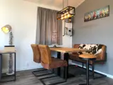 Dit comfortabele chalet is van alle gemakken voorzien. De woonkamer is voorzien van een zithoek, tv en eethoek. De keuken is ingericht met een koelkast met vriesvak, vaatwasser, combi-oven, waterkoker en koffieapparaat. Er zijn twee slaapkamers. De eerste slaapkame heeft een tweepersoonsbed (160 x 200 cm) en een eigen tv. Het dekbed en het matras zijn tweepersoons. De tweede slaapkamer twee biedt plaats aan drie personen. Er is een stapelbed en een eenpersoonsbed. het bovenste deel van het stapelbed kan worden ingeklapt. De badkamer heeft een douche, wastafel en toilet. Het chalet heeft een tuin met tuinmeubels en een barbecue.