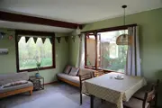 Het huisje bestaat uit een woonkamer met twee slaapkamers. In de eerste slaapkamer vind je twee comfortabele eenpersoons-boxspringbedden (200 x 80). In de tweede slaapkamer (L vormig) vind je een eenpersoonsbed (200 x 80), een klein eenpersoonsbed (190 x 70) en een hoog eenpersoonsbed (190 x 80). Het huisje dateert uit de jaren 70 zoals te zien is op de foto's. Enkele details vind je daar nog van terug zoals de verwarming via een gaskachel in de woonkamer. Daarnaast wordt er extra verwarmd met een straalkachel welke je kunt verplaatsen naar de slaapkamers. In de woonkamer vind je twee vaste banken en de keuken met 4 pits gasfornuis. Koelkast, keukenspullen, waterkoker en koffiezetapparaat (filter) zijn aanwezig.