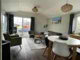 Dit chalet is gelegen aan een grote speelweide op het park.De woonkamer heeft een zithoek, HR-gashaard, flatscreen tv, radio/cd/dvd-speler met bluetooth en een eethoek. De keuken is ingericht met koelkast met vriesvak, waterkoker, koffiezetapparaat en Senseo. Er zijn twee slaapkamers, waarvan een met 1 tweepersoons bed (140 x 200) voorzien van eenpersoons dekbedden. De andere slaapkamer heeft 2 eenpersoons bedden (80 x 200). Er is een badkamer met douchecabine, wastafel en toilet. Het chalet heeft een omheinde tuin met terras. Tuinmeubilair is aanwezig.
