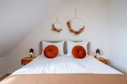 Op de benedenverdieping is de badkamer, met toilet, inloopdouche en handdoekradiator. Vanuit de hal bereik je de bovenverdieping met twee slaapkamers. De grote slaapkamer heeft een tweepersoonsbed met twee eenpersoonsdekbedden, een kast en wastafel. De tweede slaapkamer heeft twee eenpersoonsbedden, een kast en een wastafel. Bij aankomst zijn de bedden voor jullie opgemaakt.