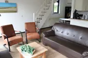De open keuken van dit vrijstaande vakantiehuis is ingericht met oven, vaatwasser en magnetron. In de woonkamer vind je een zithoek met open haard, tv en radio/cd-speler. Tevens is er een eethoek. Op de begane grond is een badkamer met douche in bad en toilet. In de berging staat een wasmachine. Op de bovenverdieping zijn twee slaapkamers met elk 2 eenpersoons bedden.Dit vakantiehuis heeft een tuin met terras. Tuinmeubilair is aanwezig.