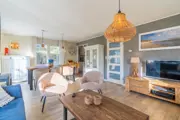 De ruime en lichte woonkamer van dit vrijstaande vakantiehuis heeft een zithoek met een gashaard en TV. Tevens is er een eethoek met eettafel voor 6 personen. De luxe open keuken is uitgerust met alle moderne inbouwapparatuur zoals, een vaatwasser, 5 pits gasfornuis, combimagnetron, koelkast met vriesvak, Senseo en filterkoffiezet apparaat. Op de begane grond is een slaapkamer met 2 eenpersoons boxspringbedden en een wastafel. Daarnaast bevindt zich op de begane grond een tweede badkamer met wastafel en douche. Er is een apart toilet aanwezig. Op de bovenverdieping zijn twee slaapkamers elk met 2 eenpersoons bedden. Een van de slaapkamers heeft tv. De grote badkamer heeft een ligbad met whirlpool functie, aparte douche, wastafel en een toilet. Dit vakantiehuis heeft een ruime en volledig omheinde tuin met een beschut terras op het zuiden. Tuinmeubilair, fietsenrek, parasol en tuinhuisje is aanwezig. In de berging staan een wasmachine en droger. Gratis wifi. Roken is niet toegestaan.