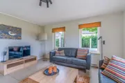 De woonkamer van dit vrijstaande vakantiehuis heeft een zithoek met houtkachel, LCD-tv, dvd-speler en audioapparatuur. Tevens is er een eethoek. De open keuken is ingericht met vaatwasser en combimagnetron en Senseo. Er is een apart toilet aanwezig. In de berging staan een wasmachine en droger. Op de bovenverdieping zijn twee slaapkamers, welke beide zijn voorzien van een tweepersoons boxspringbed en tv. De badkamer heeft een whirlpool, aparte douche, dubbele wastafel en toilet. Dit vakantiehuis heeft een ruime tuin aan het water en een terras op het zuidwesten. Tuinmeubilair is aanwezig.