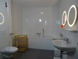 De ruime woonkamer van appartement De Dors heeft een zithoek met tv en een eethoek. De open keuken is ingericht met een inductiekookplaat, koelkast, vrieskast, oven, magnetron, vaatwasser, waterkoker en koffiezetapparaat. Er is een slaapkamer met 2 eenpersoons bedden op de begane grond. De ruime invalidenbadkamer heeft een douche en toilet met beugels. Er is een aparte ruimte met wasmachine en droger. Op de bovenverdieping zijn twee slaapkamers met elk 2 eenpersoons bedden. Een van de slaapkamers heeft een wastafel, de andere slaapkamer heeft een tv. De badkamer boven heeft ligbad, douche en toilet. Het appartement heeft een ruim terras.