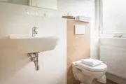 De kamer is voorzien van 2 boxspring bedden, kledingkast en een zitje met tafel. Er is gratis Wifi en een flatscreen tv. De moderne badkamer heeft een inloop douche, wastafel en toilet.
