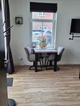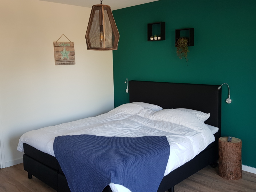 Kamer De Bollekamer heeft een eigen entree en ligt op de begane grond. De kamer heeft een tweepersoons bed, zitje, smart-tv, koelkast, waterkoker en Senseo. De badkamer heeft een inloopdouche, wastafel en toilet. Via openslaande deuren kom je op een privéterras met zitje, voorzien van elektrische zonnescherm. De drie kamers in BzB Westerduinen zijn ingericht met een 'industriële touch'.