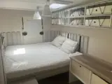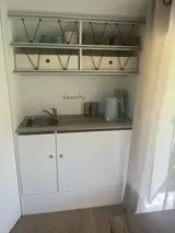 Deze sfeervolle toercaravan ''Beachy'' is gezellig ingericht voor twee personen. De compacte caravan heeft een zithoek die je eenvoudig ombouwt tot comfortabel bed. Je beschikt over voldoende bergruimte, een kleine keuken met servies en kookgerei en een koelkast/box. Je maakt gebruik van het gemeenschappelijke sanitair van de camping. Je geniet van het buitenleven op je terras met twee comfortabele stoelen en een eettafel.