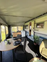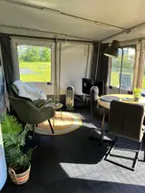 Deze compleet ingerichte toercaravan met voortent is geschikt voor 1a2 personen en staat op een ruime plaats op onze boerencamping. De inrichting is van alle gemakken voorzien. De caravan heeft een tweepersoons bed en een open keuken. Hier vind je een grote koelkast, een 4 pits kookstel, een Nespresso apparaat, filterkoffie apparaat, waterkoker, oven, tosti apparaat enzovoort. In de voortent kun je in lekkere fauteuils bij de televisie zitten, of genieten aan de eettafel. Het bed is opgemaakt, er ligt een handdoekenpakket en een Texels douchesetje. Je beschikt over een tuin met tuinmeubels. Er is een toilet in de caravan aanwezig. Je kunt gebruik maken van toilet, wastafel en douche en wasmachine in het gemeenschappelijke toiletgebouw op de camping. Rook en huisdiervrij