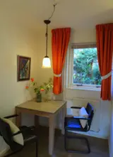 De woonkamer heeft een zithoek met tv. De open keuken is ingericht met koffiezetapparaat en Senseo, koelkast en magnetron. Er is een kleine aparte eetkamer. De slaapkamer beschikt over 2 eenpersoons boxspringbedden. De badkamer heeft een douche en toilet. Dit vakantiehuis heeft een tuin.