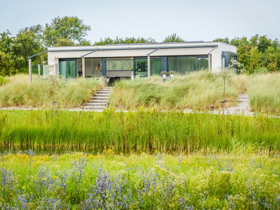Deze onder moderne architectuur gebouwde luxe vrijstaande vakantievilla heeft een volledig glazen pui over de gehele breedte. Daardoor heb je een panoramisch uitzicht op de omgeving. De woonkamer heeft een zithoek met gashaard, smart-tv met Netflix en Sonos muzieksysteem. Er is een eethoek met een grote eettafel voor tien personen. De keuken met kookeiland is ingericht met koelkast, oven, vaatwasser, quooker en Nespresso. Er is een ruime slaapkamer met tweepersoons-boxspringbed (extra lang), een zitje en een smart-tv. De badkamer heeft een ligbad, inloopdouche, badmeubel en toilet. Er is een nog extra toilet. In het souterrain bevinden zich vier slaapkamers, waarvan een met stapelbed. De andere drie slaapkamers hebben boxspringbedden, een smart-tv en een badkamer en suite met inloopdouche en toilet. Er is ook een ruime Zweedse sauna aanwezig. Dit luxe vakantiehuis heeft een royaal terras op het zuiden. Er is een tweede terras aan het water en diverse gezellige zitjes. Tuinmeubilair is aanwezig.