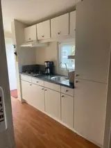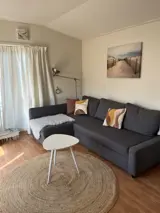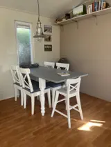 Woonkamer met een bank, losse relax stoel en een eethoek. Open keuken met oven, koelkast, vriezer en een volledige inventaris. Er zijn over 2 slaapkamers, een grote slaapkamer (met een 2-persoons bed (160 x 200 cm) met eenpersoons dekbedden) en een kleine slaapkamer. De bedden van de kleine slaapkamer zijn 70cm breed en dus niet geschikt voor volwassenen. De badkamer van het chalet is ruim en beschikt over een toilet, wastafel en douche. Je hebt een fijne, afgeschermde tuin met een terras met tuinmeubels. Naast het chalet is er ruimte om 1 auto te parkeren.
