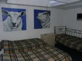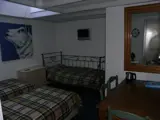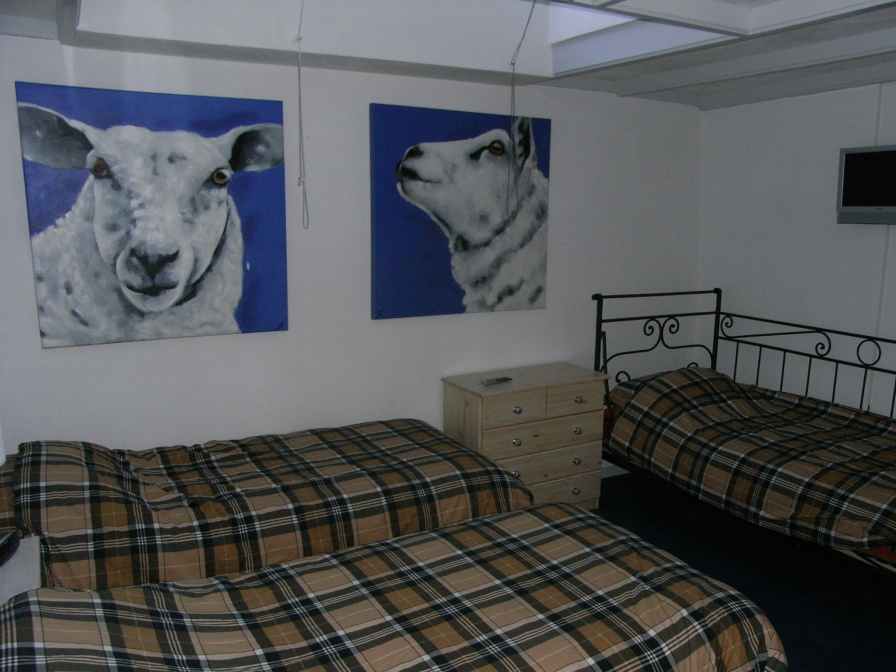 De kamer op de begane grond heeft drie eenpersoons-boxspringbedden en een SmartTV. Er is een eethoek. Een koelkast, waterkoker en Senseo zijn aanwezig. De gedeelde badkamer heeft een ligbad, douche, wastafel en toilet.