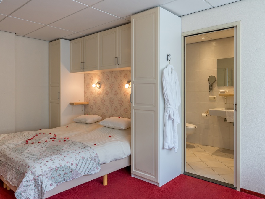 De ruime kamer heeft twee eenpersoons boxspringbedden en een flatscreen tv. Minibar is aanwezig. De badkamer heeft een bad of douche, wastafel en toilet.