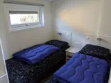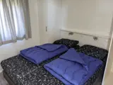 Chalet type G heeft een gezellige woonkamer met zithoek, eethoek en smart-tv, met apps als Netflix. De open keuken heeft een koffiezetapparaat en waterkoker. Een slaapkamer met 2 eenpersoons bedden. Deze zijn geschakeld. De tweede slaapkamer heeft 2 aparte eenpersoons bedden. In de badkamer vind je de douche, wastafel en toilet. Terras met tuinmeubels en een overkapping achter aan het chalet.