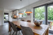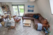 De woonkamer heeft een zithoek met grote hoekbank, enkele fauteuils, houtkachel, tv en een eethoek. De open keuken is ingericht met een koelkast met vriesvak, combimagnetron, vaatwasser, koffiezetapparaat en Senseo. Er is een bijkeuken met wasmachine en droger. In de slaapkamer staan twee eenpersoonsbedden tegen elkaar (boxsprings). Er is een douchecabine en een wastafel. Het toilet is in de hal. Op de bovenverdieping zijn twee slaapkamers, waarvan één met twee eenpersoonsbedden. De andere slaapkamer heeft vier eenpersoonsbedden en een tv. Er is een tweede badkamer met douche, wastafel en toilet. Vakantiehuis Blommetjes Buiten heeft een riante tuin rondom het huis. Er zijn twee terrassen voorzien van comfortabel tuinmeubilair.