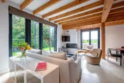 De woonkamer heeft een zithoek met sfeerhaard, tv, bluetooth speaker en eethoek. De open eikenhouten keuken is ingericht met vijf-pits gasfornuis inclusief wokbrander, koelkast met vriesvak, combimagnetron, vaatwasser, filterkoffiezetapparaat, Nespresso machine en melkopschuimer. Er is een apart toilet. Op de bovenverdieping zijn twee slaapkamers met elektrisch verstelbare boxspringbedden en een tv. Eén van de slaapkamers heeft een badkamer en suite met inloopdouche en toilet. Er is een tweede badkamer met bad, douche en toilet. In het souterrain is een zithoek met goed gevulde boekenkast. Vakantiehuis De Buitenplaats heeft een groot terras op het zuiden. Tuinmeubilair is aanwezig. Ook beschik je over een schuur waar fietsen of een golftas gestald kunnen worden. Er zijn stopcontacten om je e-bike op te laden.
