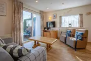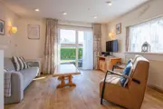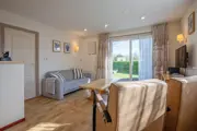 De woonkamer van deze geschakelde bungalow heeft een eethoek en zithoek met flatscreen-tv, dvd-speler en radio/cd-speler. De open keuken is ingericht met een koelkast, drieladen diepvriezer, combimagnetron, vaatwasser, waterkoker en koffiezetapparaat. Er zijn twee slaapkamers met elk 2 eenpersoons boxspringbedden en een wastafel. De badkamer heeft een ligbad, aparte douche en wastafel. Er is een apart toilet. Deze bungalow heeft een royale tuin met terras op het zuiden. Tuinmeubilair is aanwezig.