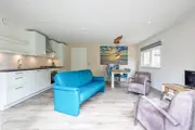 De woonkamer heeft een gezellige zithoek met smart-TV en openslaande deuren naar het terras. De open keuken is voorzien van oven, vaatwasser, 4-pits gasfornuis Nespresso en filterkoffieapparaat. Een slaapkamer met tweepersoonsbed (180 x 200), een slaapkamer met twee eenpersoonsbedden (90 x 200) en een slaapkamer met een eenpersoonsbed (90 x 200). Een nieuwe badkamer en een niet gerenoveerde badkamer, beide met douche en toilet. Grote, beschutte en omheinde tuin met terras op het zuiden/zuidoosten. In de tuin staat een afsluitbaar schuurtje om de fietsen te stallen.