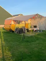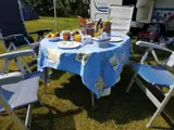 Wij hebben op de camping 15 kampeerplaatsen (voorzien van eigen elektra punten van 6 Amp.). Ons sanitair gebouw met vloerverwarming heeft 4 toiletten, 4 douches (gratis dus geen muntjes) en 4 wastafels.