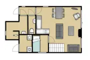 De open keuken van dit vrijstaande vakantiehuis is ingericht met vaatwasser en magnetron. Tevens is er een eethoek. In de woonkamer vind je een zithoek met open haard, tv en radio/cd-speler. Op de begane grond is een slaapkamer met 1 eenpersoons bed. De badkamer heeft een douche en toilet. In de berging staan een wasmachine en droger. Op de bovenverdieping zijn twee slaapkamers met elk 2 eenpersoons bedden. Dit vakantiehuis heeft een tuin met terras. Tuinmeubilair is aanwezig.