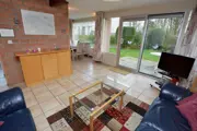 De woonkamer van deze geschakelde bungalow heeft een zithoek met tv en een eethoek. De open keuken is ingericht met een koelkast, combimagnetron, vaatwasser en koffiezetapparaat. Er zijn drie slaapkamers met ieder 2 eenpersoons boxspringbedden. Er zijn twee badkamers met douche, wastafel en toilet. Deze bungalow heeft een tuin met terras. Tuinmeubilair is aanwezig.