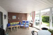 De woonkamer van deze geschakelde bungalow heeft een zithoek met tv en dvd-speler en een eethoek. De open keuken is ingericht met koelkast en vaatwasser. Er zijn twee slaapkamers, waarvan 1 met twee eenpersoonsbedden, de andere heeft een stapelbed, het onderste bed is voor 2 personen en boven een eenpersoons bed. De badkamer met douche, toilet en wasbak. Deze bungalow heeft een tuin met een beschut terras. Tuinmeubilair is aanwezig.
