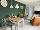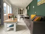 Entree, woonkamer met een zithoek met tv en dvd-speler en een eethoek. De open keuken is ingericht met gasfornuis, koelkast, oven en vaatwasser. Er zijn twee slaapkamers met elk twee eenpersoons-boxspringbedden. De badkamer heeft een douche, wastafel en toilet. In de berging staan een wasmachine en droger. Dit vakantiehuis heeft een beschutte tuin. Tuinmeubilair is aanwezig.