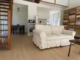 Vrijstaand vakantiehuis met grote tuin gelegen in het bos. De woonkamer heeft een zithoek met open haard, tv en radio en is voorzien van een schuifpui naar de tuin. Er is een eethoek en open keuken welke ingericht is met vaatwasser en broodrooster. De badkamer is voorzien van een douche en toilet. Boven zijn twee slaapkamers; 1 met een 2-persoons bed (160x200) met 2 matrassen en 1 slaapkamer met 2 eenpersoons bedden. Rondom dit vakantiehuis ligt een tuin met terras. Tuinmeubilair met kussens en parasol zijn aanwezig. Tevens is er een buitenhaard zichtbaar op de foto's, alleen kan deze helaas niet gebruikt worden. Er is een extra berging met wasmachine en droger. Er is plaats voor fietsen onder een afdak.