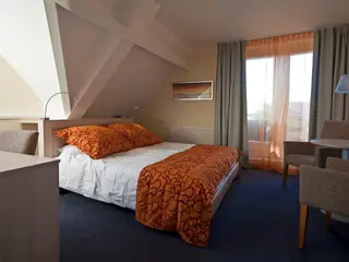 De kamer heeft 2 eenpersoonsbedden en een zitje met flatscreen tv, wekkerradio en telefoon. De badkamer heeft een bad, aparte douche, wastafel en toilet. Op het balkon bij de kamer is tuinmeubilair is aanwezig.