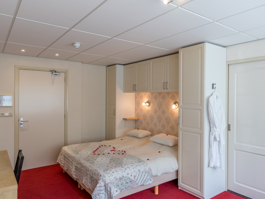 De kamer heeft 2 eenpersoons boxspringbedden en een zitje met flatscreen tv en wekkerradio. Een minibar is aanwezig. In de badkamer vind je een bad of douche en toilet. De kamer heeft een balkon op het zuiden.