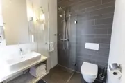 Hotel Boschrand beschikt over 51 moderne hotelkamers. Deze ruime, lichte kamer met balkon is 20m2 groot, heeft 2 eenpersoons luxe boxspring bedden met topper. Je beschikt over een bureau, een kluisje, 2 comfortabele stoelen, een Ultra HD Smart-tv en een wekkerradio met usb-aansluiting. De badkamer heeft een föhn, vloerverwarming, een ligbad, een aparte douchecabine met regendouche, wastafel en toilet.