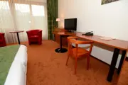 Deze kamer met terras is voorzien van 2 eenpersoons boxspringbedden en een zithoek met tv. Er is een koelkastje aanwezig. De badkamer heeft een inloopdouche, dubbele wastafel en toilet. Tuinmeubilair is aanwezig.
