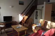De open keuken van dit vrijstaande vakantiehuis is ingericht met vaatwasser, magnetron en een eethoek. In de woonkamer vind je een zithoek met open haard, tv en radio/cd-speler. Op de begane grond is een slaapkamer met 1 eenpersoons bed. De badkamer heeft een douche en toilet. In de berging staat een wasmachine. Op de bovenverdieping zijn twee slaapkamers met elk 2 eenpersoons bedden. Dit vakantiehuis heeft een tuin met terras. Tuinmeubilair is aanwezig.