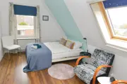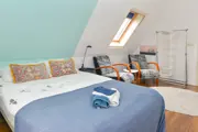 Kamer met een eenpersoonsbed (140 x 200 cm) en een zitje. Tweede kamer met een tweepersoonsbed (twee boxsprings van 90 x 200 cm) en een zitje. Er is een badkamer met douche, wastafel en toilet. In de ontbijtkamer zijn een eettafel en alle ontbijt- en koffie/thee faciliteiten aanwezig.