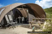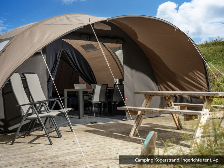 Deze compleet ingerichte tent ligt op een mooi plekje op camping Kogerstrand.