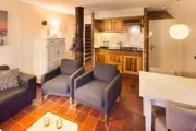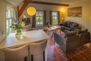De Koolmees is gelegen in een stolpboerderij waar de traditionele boerensfeer goed bewaard is gebleven. De woonkamer van appartement Koolmees heeft een zithoek met tv en een eethoek. De open keuken is ingericht met koelkast en magnetron. Op de begane grond is een badkamer met douche en toilet. Op de bovenverdieping zijn twee slaapkamers, waarvan een met tweepersoons boxspringbed. De andere slaapkamer heeft 2 eenpersoons boxspringbedden. Ook is er een wastafel aanwezig. Je kunt gebruik maken van een van de vrijliggende terrassen in de heerlijke tuin van de boerderij.