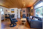 De woonkamer van deze vrijstaande bungalow heeft een zithoek met open haard, tv en eethoek. De open keuken is ingericht met een koelkast met vriesvak, vaatwasser, combimagnetron, filter koffiezetapparaat, broodrooster en waterkoker. Er zijn drie slaapkamers met in totaal 5 eenpersoons bedden. De badkamer heeft een douche en wastafel. Het toilet is separaat. Deze bungalow heeft een tuin met terras. Tuinmeubilair is aanwezig.