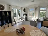 Dit chalet heeft een woonkamer met een fijne zithoek en tv. Er is een eethoek met vier stoelen. De open keuken is ingericht met een oven, gaskookplaat en koelkast met vriesvak. Er zijn twee slaapkamers waarvan 1 met een 2 persoonsbed (2 eenpersoons boxsprings 70x200) en 1 met 2 eenpersoonsbedden (80x200). Kussens en 1-persoonsdekbedden zijn aanwezig. De badkamer is voorzien van douche en toilet. Het chalet heeft een ruime, beschutte tuin met terras en tuinmeubilair. Er is een parasol beschikbaar.