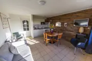 De woonkamer is voorzien van zithoek en een eethoek. In de open keuken is een koelkast met vriesvak aanwezig en een magnetron. De badkamer heeft een douche. Er is een separaat toilet. Op de bovenverdieping zijn twee slaapkamers. De eerste slaapkamer heeft een tweepersoons bed. De andere slaapkamer heeft twee enkele kinderbedden (80x190 cm). Voor de allerkleinsten kan je eventueel een campingbedje van ons lenen. Het vakantiehuis heeft een terras op het zuiden. Aan de grote picknicktafel kun je heerlijk ontspannen met uitzicht op de natuur.
