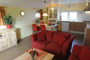 Appartement rood ligt in de stolp. De woonkamer heeft een zithoek met tv en een eethoek. De open keuken is ingericht met een koelkast met vriesvak, vaatwasser, magnetron, waterkoker en Senseo. Er zijn slaapkamers, waarvan een met tweepersoons boxspringbed. In de andere slaapkamer staan 2 eenpersoons boxspringbedden. De badkamer heeft een bad, wastafel en toilet. Het appartement heeft een terras.