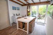 De woonkamer heeft een zithoek met tv en een houtkachel. Er is ook een eethoek. De open keuken is ingericht met koelkast, combimagnetron en vaatwasser. Er zijn twee slaapkamers, één met tweepersoonsbed met twee matrassen (80 x 200) en één slaapkamer met twee eenpersoonsbedden (80 x 200). Een van de slaapkamer heeft een wastafel. De badkamer heeft een whirlpool en aparte douche. Er is een apart toilet. Dit vakantiehuis heeft een tuin met terras. Tuinmeubilair is aanwezig.