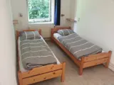 De woonkamer van deze bungalow heeft een zithoek met tv. Er is ook een eethoek. De open keuken is ingericht met koelkast, magnetron en kooktoestel. Er zijn twee slaapkamers een met 2 eenpersoonsbedden en de 2e slaapkamer een 1 persoonsbed. De badkamer heeft een douche en toilet. Deze bungalow heeft een tuin met terras. Tuinmeubilair is aanwezig.
