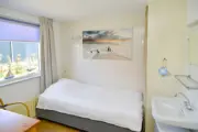 De woonkamer heeft een zithoek met tv. Er is ook een eethoek. De aparte keuken is ingericht met combimagnetron, koffiezetapparaat, Senseo, waterkoker en koelkast met vriesvak. Er is een slaapkamer met een eenpersoonsbed en wastafel. De badkamer heeft een douche en toilet. Op de bovenverdieping zijn twee slaapkamers met elk twee eenpersoonsbedden en een wastafel. Dit vakantiehuis heeft een grote, afgesloten tuin. Tuinmeubilair is aanwezig.