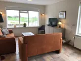 De woonkamer heeft een zithoek met tv en dvd-speler. De open keuken is ingericht met koelkast, combimagnetron en vaatwasser. Tevens is er een eethoek. De badkamer heeft een douche en wastafel. Er is een separaat toilet.