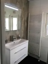 De woonkamer van dit chalet heeft een zithoek en eethoek met kabel-tv. De open keuken is ingericht met vaatwasser, combimagnetron, koelkast en inductiekookplaat, er is een Senseo en filterkoffiezetapparaat. Er zijn twee slaapkamers, één met een 2 persoons boxspringbed (160x200) en één met 2 eenpersoons bedden (80x200). De badkamer heeft een inloopdouche en wastafelmeubel. Er is een apart toilet. Dit chalet heeft een tuin met ruim terras. Tuinmeubilair is aanwezig.