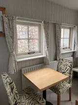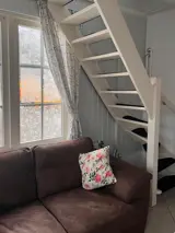 De woonkamer heeft een zithoek met tv en stereo. Er is ook een eethoek. De open keuken is ingericht met magnetron. De badkamer heeft een douche en toilet. Op de bovenverdieping is een slaapkamer met 2 eenpersoons bedden. Vakantiehuis 't Jachthuisje heeft een terras met tuinmeubilair.