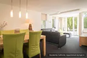 Dit comfortabele appartement type 4 ligt op de begane grond. De woonkamer heeft een zithoek met tv, radio en CD-speler. Ook is er een eethoek. De open keuken is ingericht met 4-pits elektrisch kookplaat, koelkast met vriesvak en magnetron. Er zijn twee slaapkamers met comfortabele bedden, waarvan één slaapkamer met tv. Een van de slaapkamers heeft een douche en wasgelegenheid. De badkamer beschikt over een ligbad. Dit appartement heeft een tuin met terras. Tuinmeubilair is aanwezig.