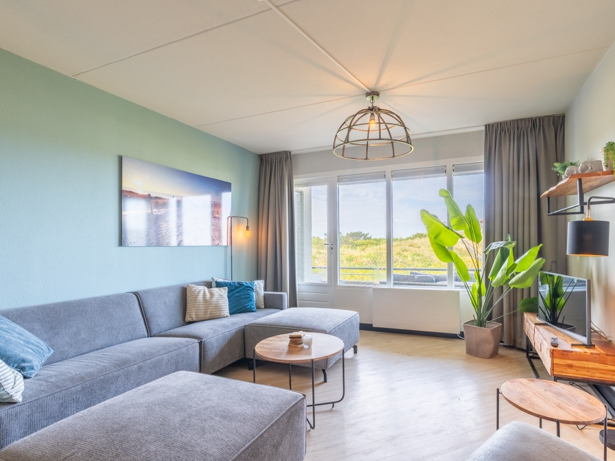 Modern en luxe 2-persoons eiland en zeezicht appartement op de begane grond. Entree, woonkamer met zithoek, tv en een eethoek met eettafel voor 2 personen. De open keuken is van alle gemakken voorzien, zoals een vaatwasser, combimagnetron, koelvriescombinatie en diverse koffiemachines. De slaapkamer heeft een comfortabel 2 persoons boxspring bed en TV. De heerlijke ruime badkamer is voorzien van een inloopdouche, wastafel en toilet. Vanuit de badkamer heb je toegang tot de ruime (privé) Finse sauna. Vanaf het balkon heb je uitzicht over badplaats De Koog, de duinen en de Noordzee. Tuinmeubilair is standaard aanwezig.
